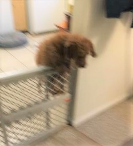 While I wrestle with housebreaking Gracie, she’s now learned how to get over the kitchen gate. The fun just doesn’t stop!
