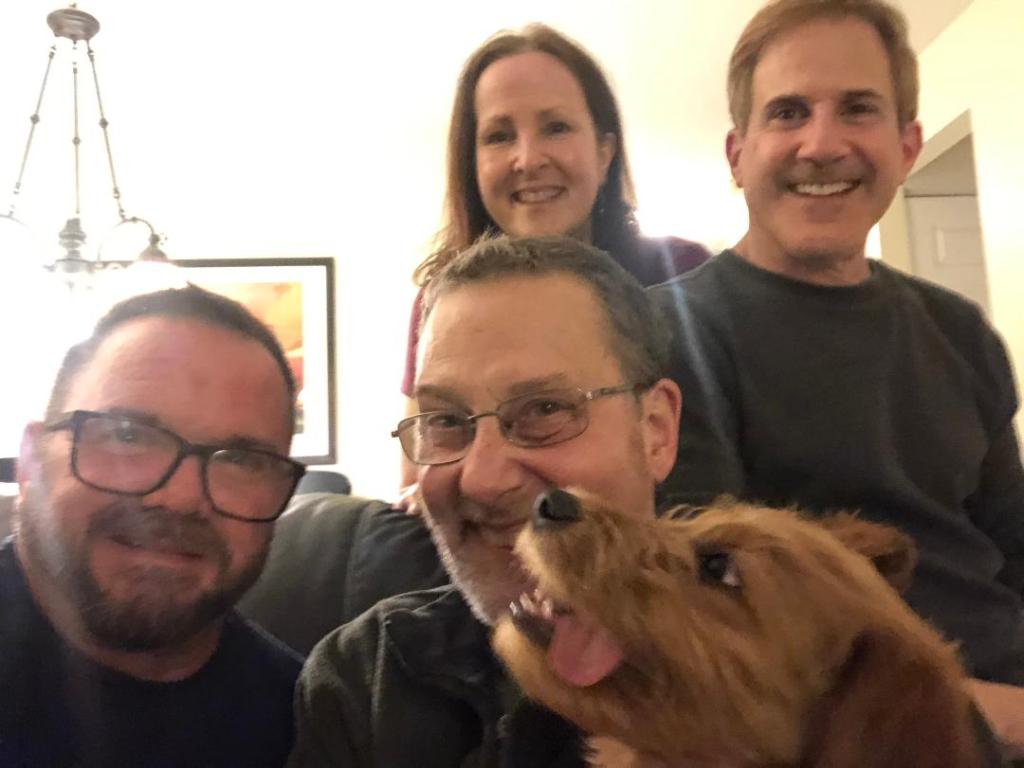 The weather turned out to be beautiful – sunny and warm all weekend. The picture below (clockwise from left – me, Tina, Michael, Jules holding camera, Gracie in center) was taken in Wilson Farm Park. It is nearly impossible to get a good group shot because Gracie wiggles around so much and absolutely CANNOT hold still for even a nanosecond. This was probably somewhere around “take” 12?