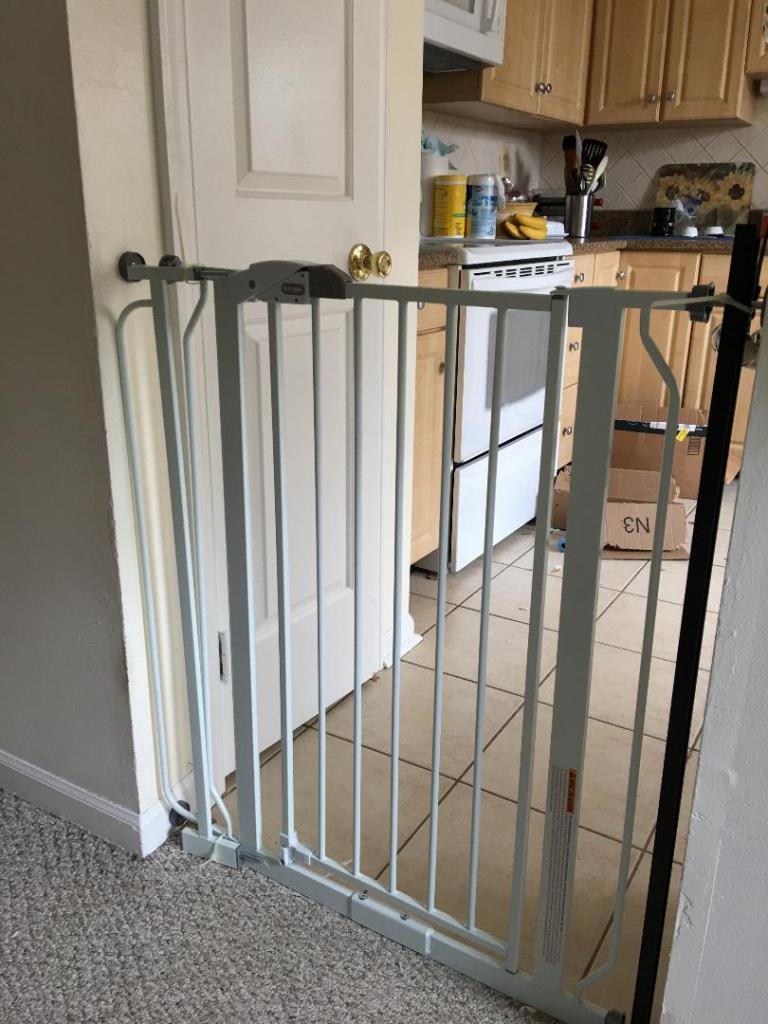 After several hours and a few setbacks, we had success! Of course, UNTIL Gracie managed to squeeze her head between the wall and the first spindle rod. Then we had to improvise to further prevent dog head injuries. (They neglected to include instructions in the directions for this safety hazard.) We ended up jury-rigging a solution by cable-tying to the gate an unused portion of the gate and a piece of a picture frame. (Finally, my picture hanging experience actually came in handy.) By the way, we had the duct tape within easy reach, too, just in case.