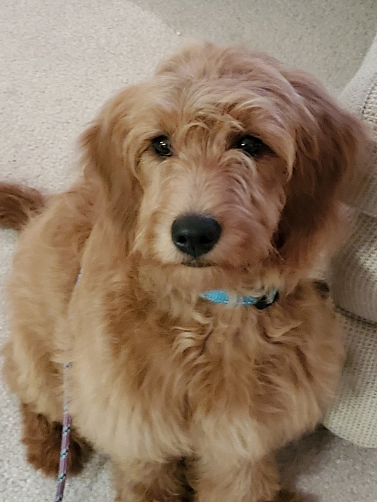 Gracie found a new friend, Brady. He is a seven-month-old cockapoo – a very cute dog, similar in color and size to Gracie. (Brady’s picture is below.) We’ve seen Brady and his owner, Liz, several times nearby in the past few days. Liz and Brady live in a neighborhood adjacent to mine. According to Liz, Gracie is one of the few dogs that Brady will play with. (And Liz is one of the few dog owner names I actually know.) While Brady and Gracie frolic together. Liz and I compare doggie notes. Here’s a snippet from today: