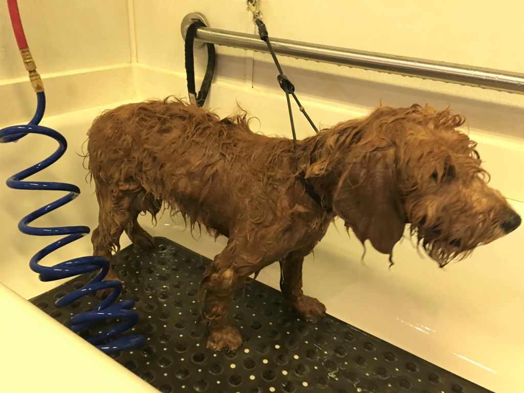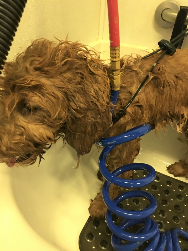 When we left the dog park, I took Gracie directly to Braxton’s to get a VERY MUCH NEEDED bath. The dirt poured off of her. (And, of course, some of it onto me.)