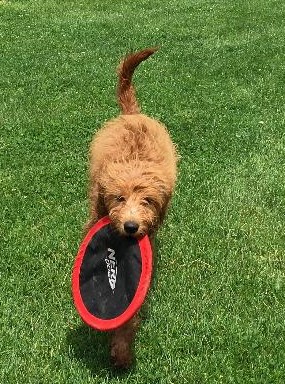 Also, during our visit, I contacted Debra, who met Gracie and me several times first at Tudek Dog Park, then at Millbrook Park where Gracie could cool herself off in Spring Creek. When I left a voice mail for Debra, letting her know Gracie and I were in town, Debra’s voice-text translated my word “Gracie” to “greasy.” We had a good laugh about that – calling Gracie my “Greasy Noodle.” Here’s my greasy noodle playing with Rex (left) and Jonas (right) at Tudek.
