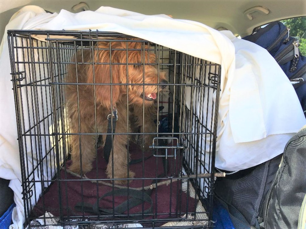 Gracie also did a whole lot of “table surfing” at Mom’s. She stole countless napkins, drank water from plants, and sniffed for table crumbs. She chewed Mom’s wall, left stick debris all over the carpet, gnawed off the cover of a hardback book, and destroyed a bookmark (after she pulled it out of the place in the book I was reading). At least this time, when she dropped a dead bird (just the head), it was BEFORE we went inside.