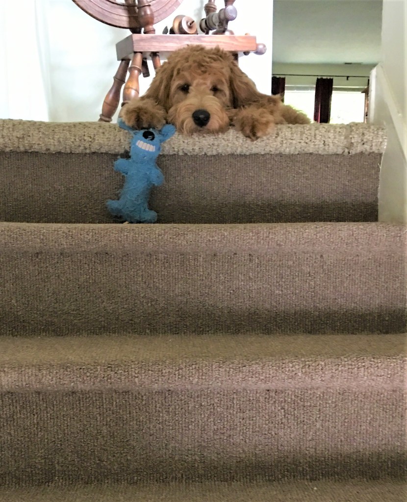 In the picture below from yesterday, she’s retrieving a stick in Valley Creek. She will do this non-stop until I get too tired! While we were there, she met a one-year-old Australian Shepard named Frankie. Gracie and Frankie (like the name of the TV show) became instant friends – chasing each other creek side through mud puddles and splashing in the stream! I didn’t get a picture of it, but Gracie came home covered in mud. A bath ensued for Gracie, followed by a serious bathroom cleanup, then a much-needed shower for me.