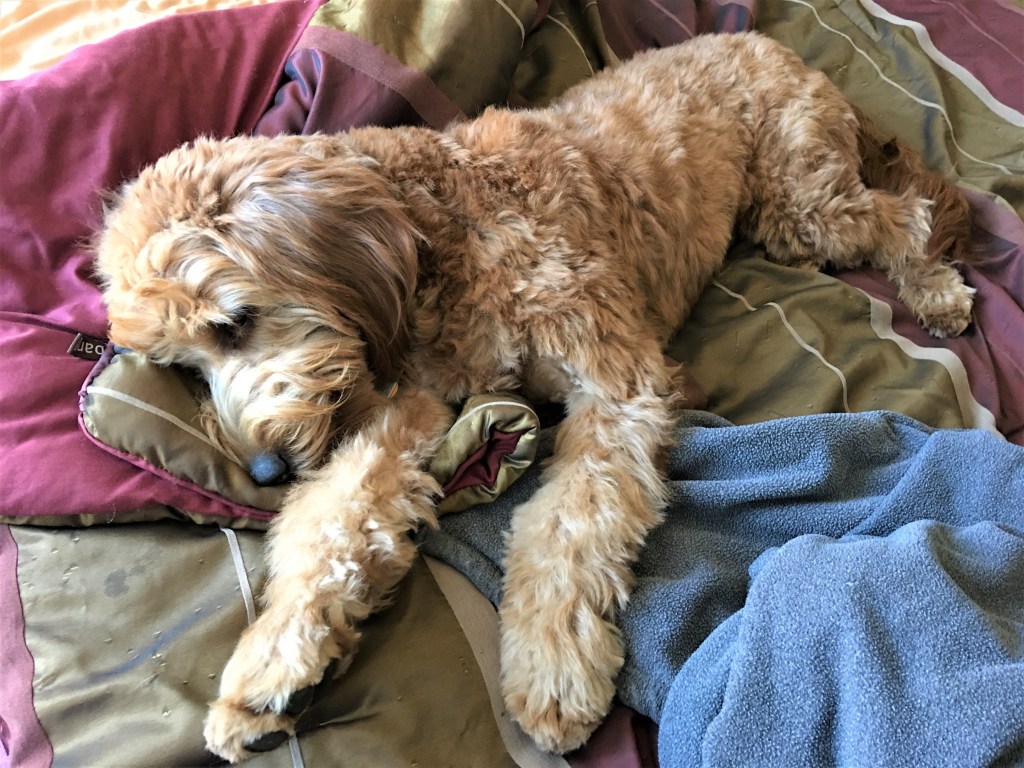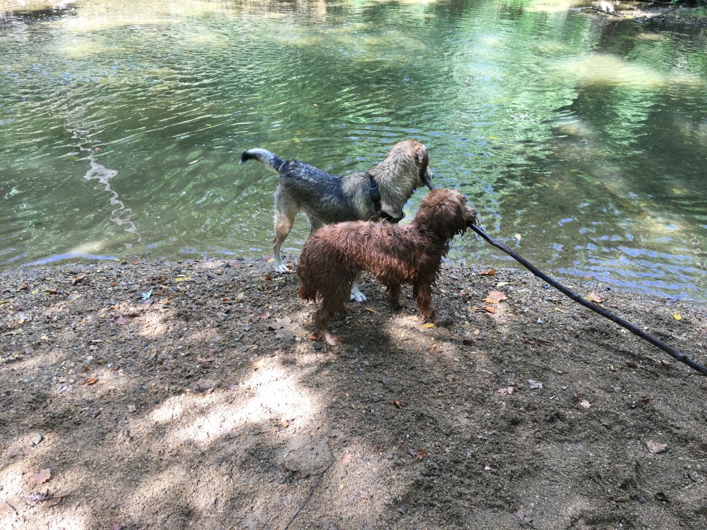 It was great to have Gracie freshly groomed on Thursday even though the unspoiled stage was awfully short-lived. I decided it’s probably fruitless to keep Gracie both happy AND clean. So, I will opt for happy. Today we went to Skunk Hollow Trail in Willow Park Preserve in Radnor where Gracie joyfully trotted through the woods, inspected flora and greeted numerous dogs. Then she swam, splashed, and chased sticks with Corgis, retrievers, and setters in Little Darby Creek. Gracie came back home looking fairly grubby, but nevertheless – I have no doubt – she’s BLISSFULLY bushed.