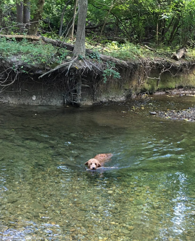 As I reflect on Gracie’s first summer, I think she sure made the best of it. Swimming was the highlight of the season for her. She took advantage of any opportunity to get in the water – from her initial plunge into the local swimming hole, to her countless hours of retrieving sticks tossed into streams, to her doggie-paddling with canine companions in area waters. To my water-loving soul, it was a joy to watch my golden noodle delight in her aquatic adventures these past several months.
