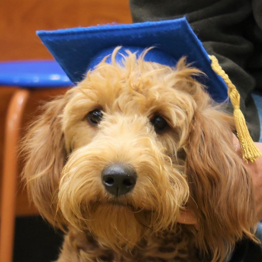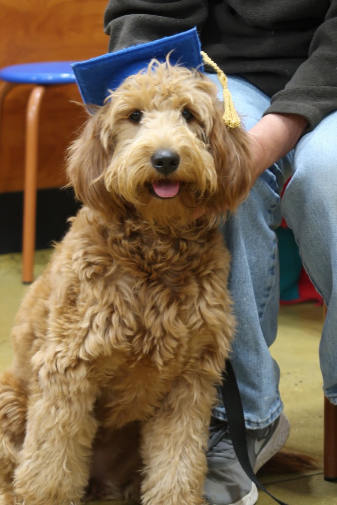 Woo-hoo!! Gracie graduated today from Intermediate Doggie training! Once again, I’m so very proud of my little Golden Noodle! (Even though, as with the beginner class, the only requirements were for Gracie to show up.) Most of today’s session was spent getting each dog to sit long enough for pictures with a graduation hat on.