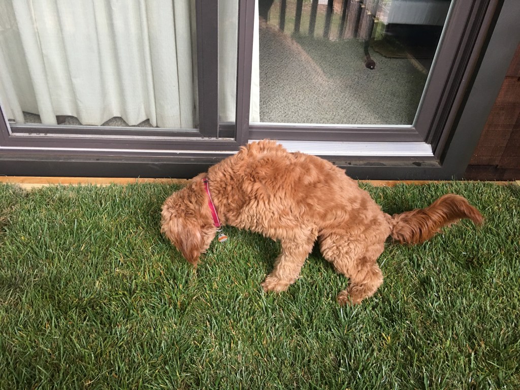 I’ve racked my brain and scoured Google for ideas on how to encourage Gracie to use her balcony potty pad. I’ve tried giving her lots of praise, doling out countless treats, “waiting until the last minute,” and even – as suggested by a few insightful friends – rubbing Gracie’s own waste on the potty pad sod so she can smell her scent.