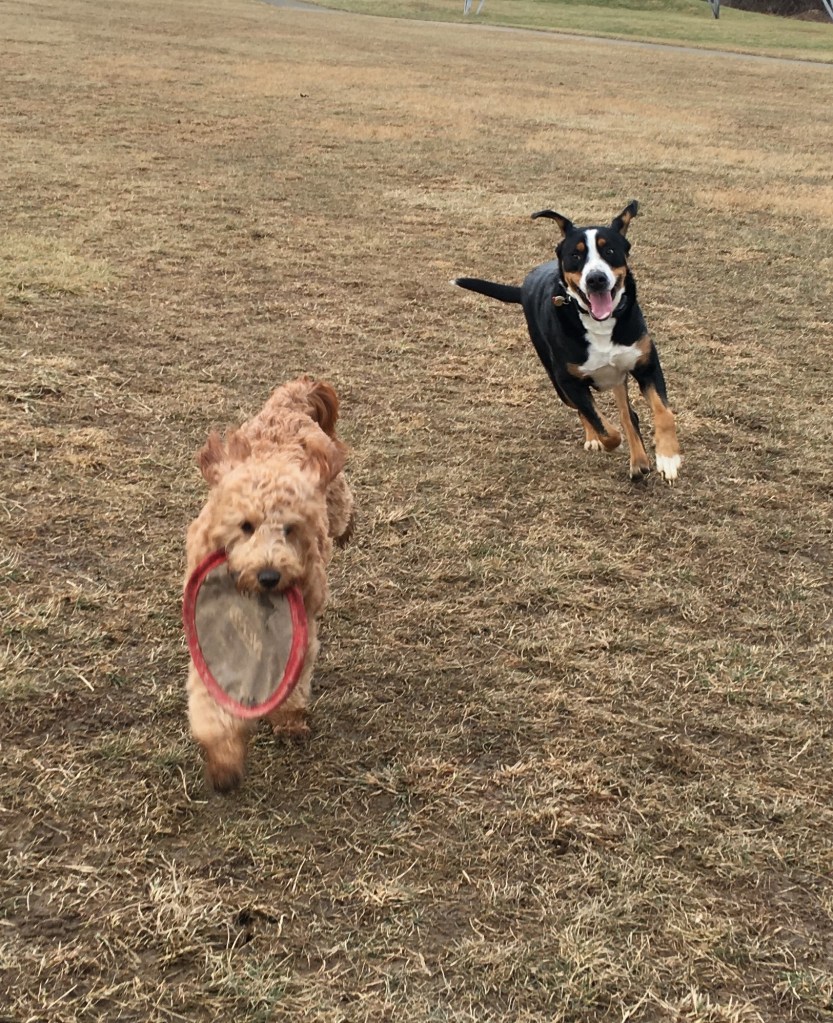 Gracie started off the New Year with a couple of fun-with-frisbee times in Teegarden Park! It was, again, all about “the chase” for her!
