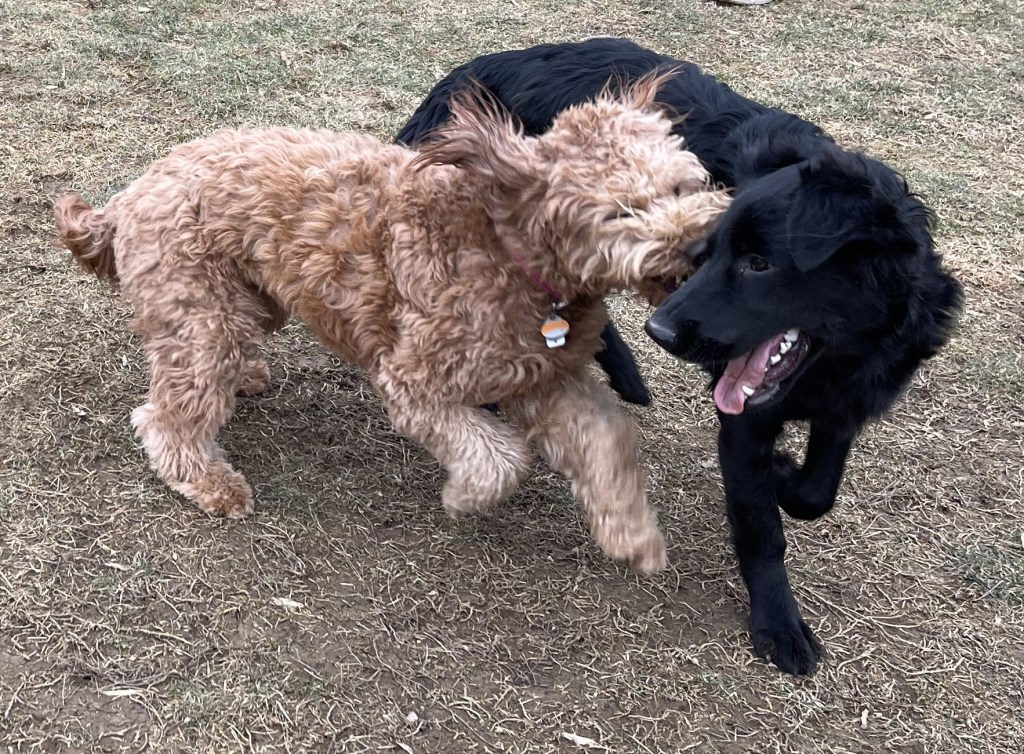 Gracie has another new friend in the park – a seven-month-old black shepherd-retriever mix. And her name is Gracie, too! Gracie and Gracie tumbled many hours together in Teegarden!