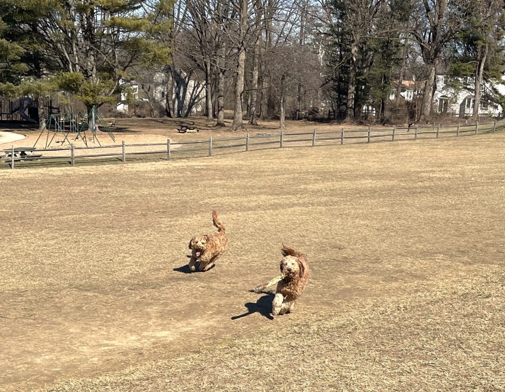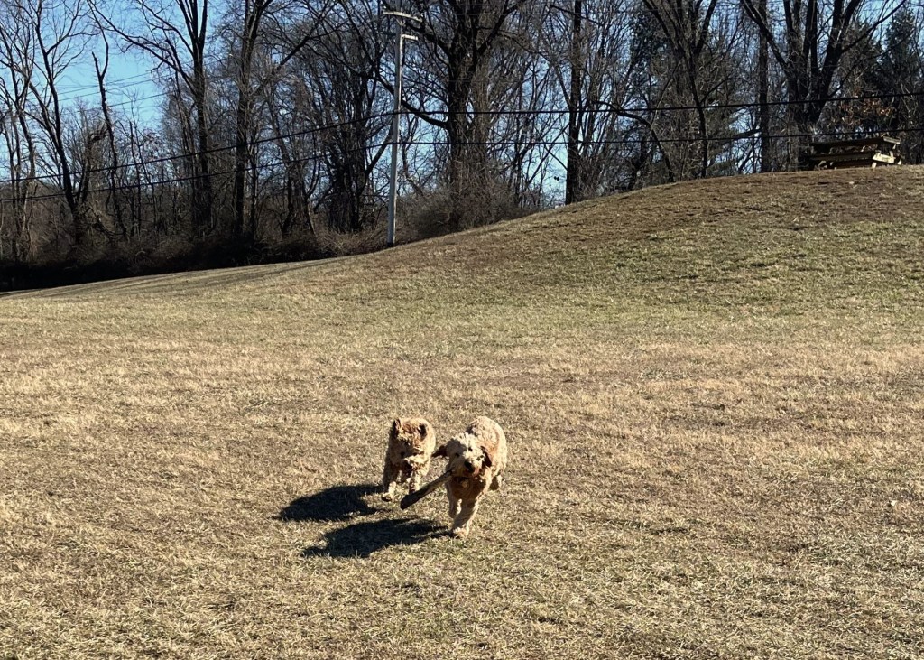 In Teegarden Park today, Gracie romped with another mini golden doodle, Bryce, who could have been her twin. They looked so much alike; it was hard to tell them apart! In the photos below, Gracie is the one with the stick!