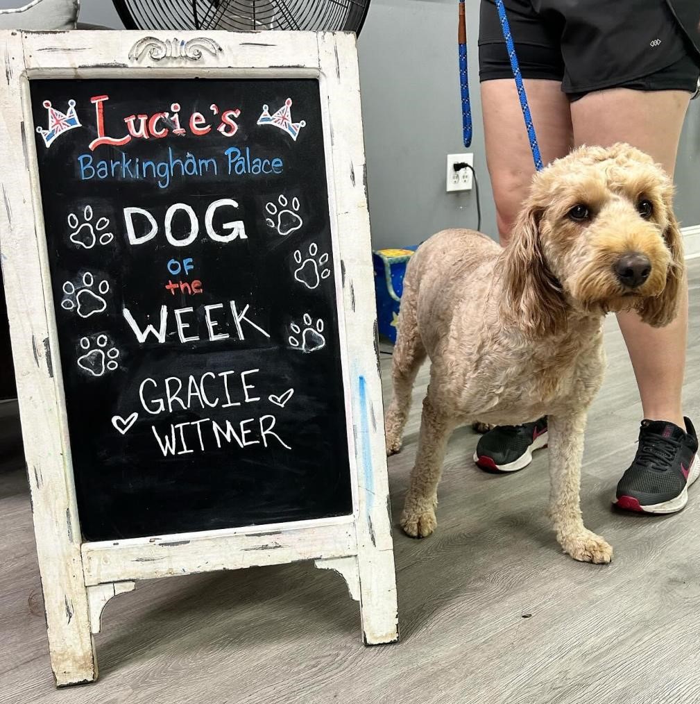 Click here to see the Facebook post where it says: “This super sweet doodle, Gracie, is a frequent flier here at Lucie’s! She’s always so excited coming through the doors, and loves to see all of her four-legged and two-legged pals! She was ecstatic to learn that she’s this week’s Dog of the Week!!”