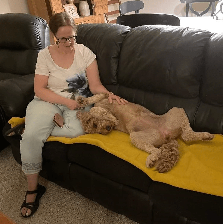 It doesn’t get much better than this for a Goldendoodle! Gracie enjoying quality time with belly rubs from Aunt Tina…
