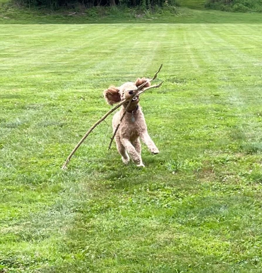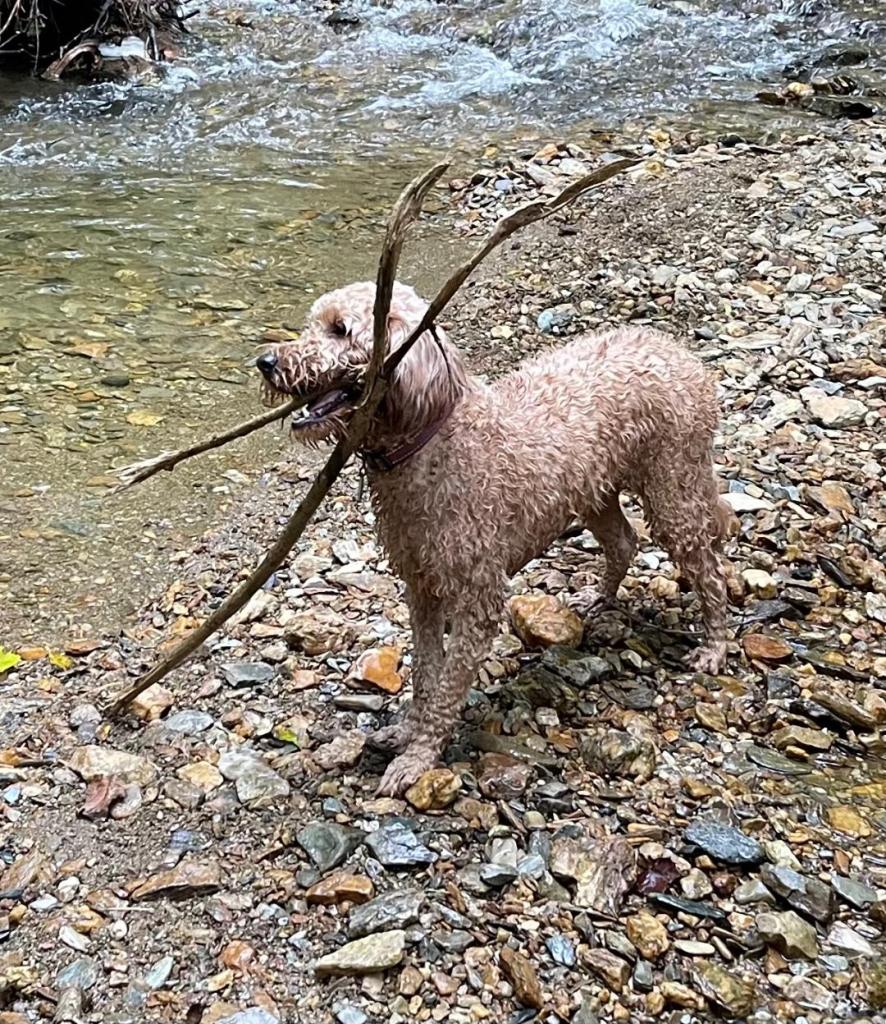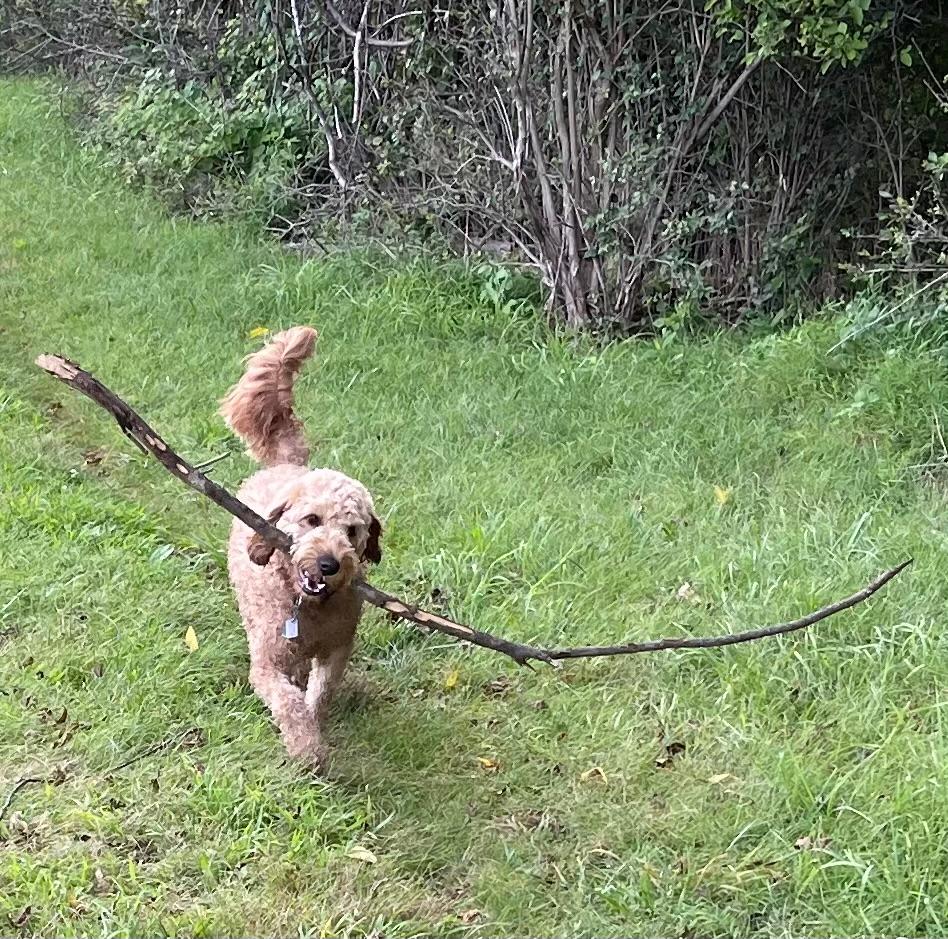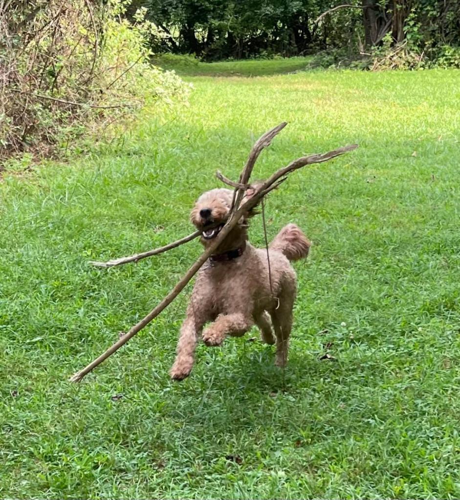 A freshly, professionally groomed golden noodle! She’s ready for her birthday and the holidays!